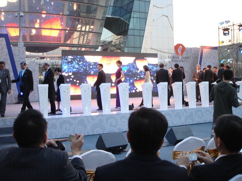 上海世界博覽會-台灣館點燈祈福儀式:星光熠熠,外圍大批媒體包圍