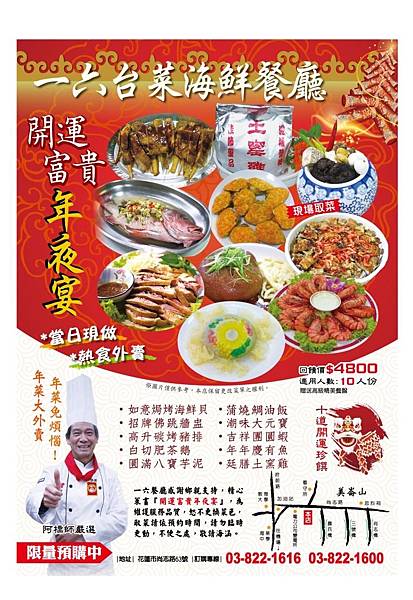 一六台菜海鮮餐廳歲末年終回饋客戶,花蓮CP值最高年夜菜,現在開賣啦!